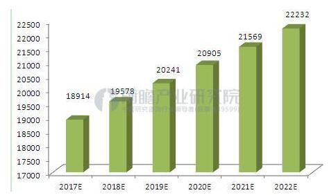 圖表1:2017-2022年中國海綿城市建設(shè)市場規(guī)模走勢預(yù)測(單位:億元)